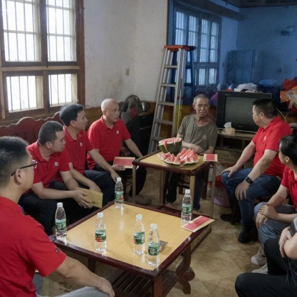 7月1日上午,朝陽(yáng)集團(tuán)開(kāi)展走訪慰問(wèn)公司患癌職工活動(dòng)。黨支部書(shū)記文志勇、副書(shū)記汪華及支部黨員代表來(lái)到大浦鎮(zhèn)鄉(xiāng)中學(xué)看望鼻咽癌患者雷春平,為其送去慰問(wèn)金14000元。隨后,一行人前往大浦鎮(zhèn)爐鋪村慰問(wèn)乳腺癌患者吳七齡,送去慰問(wèn)金7000元。
